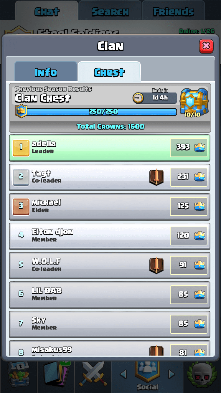 Tja, auch wenn ich ein Suchti bin, was CR anbelangt, spiele ich zurzeit Ladder überhaupt nicht (einen riesengroßen Dank an die übergelevelten Leute bei 3800+) und Duokämpfe kann man sehr schwer gewinnen, entweder ist dann der Teammate ein totaler Noob oder die Gegner sind weit zu übergelevelt (lvl 13 gewöhnliche, lvl 10-11 seltene und lvl 6-7 epische), da komme ich mit meinem Skill leider dagegen kaum an