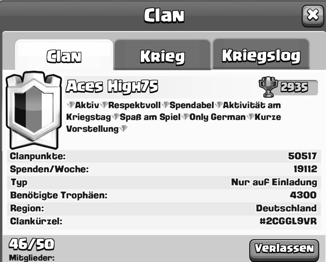 Du passt zu uns wir sind genau so suchtis wie du Clankrieg wird durchgehend gespielt momentan Gold Mit 4300 passt du dazu da wir ab 4000+ Sind kein Kindergarten schau’s dir an du wirst es nicht bereuen