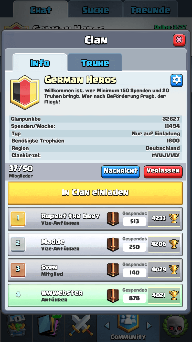 Komme einfach zu uns. Bei uns ist jeder, der aktiv im Clan mitarbeitet, herzlich willkommen.