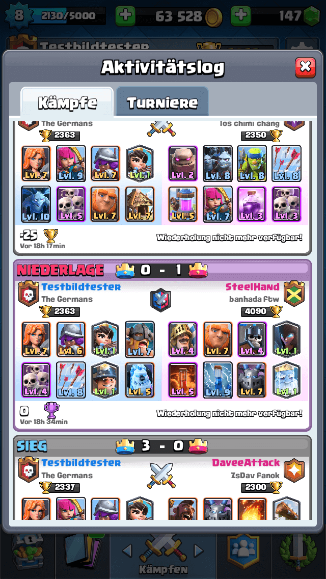 und im Finale leider auch immer gegen Turmlevel 9 spiele incl. schwächerer Karten und dann natürlich ab 1000 bis 2000 Trophis über meinen...