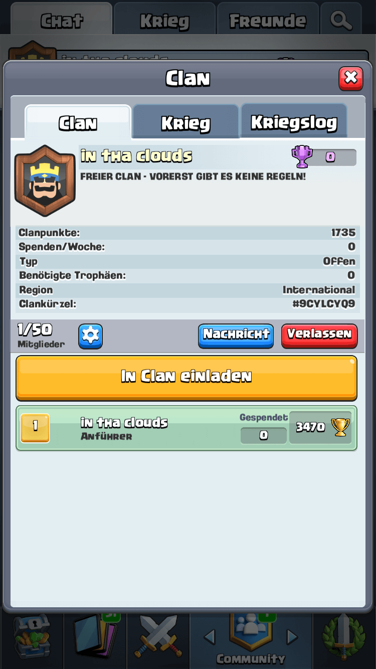 Der Clan ist erst im Aufbau und hoffe, mit dir zusammen einen großen und starken Clan entwickeln zu können.