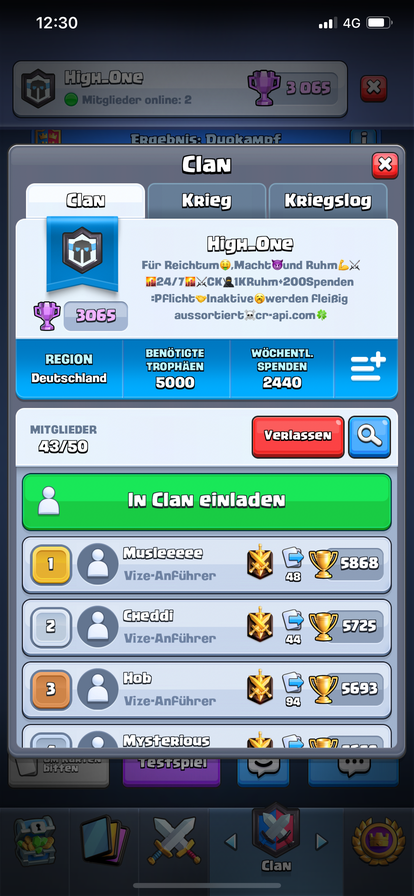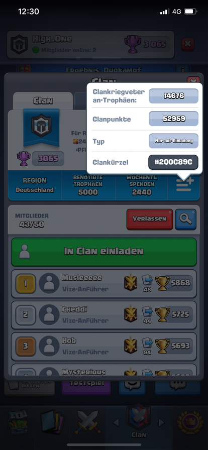 Hey ihr Lieben! ❤️ Wir die High_One‘s suchen aktuell noch fleissige und Kriegsmotivierte Krieger für unseren tollen Clan! 🤪 Am liebsten ab Lvl 12, wir machen auch Ausnahmen für kleinere! Wir sind sehr aktiv dabei und würden uns sehr freuen den ein oder anderen von euch bei uns begrüssen zu dürfen! 🔥🔥😘 Clankürzel wäre #2QOC89C 🥳🥳
