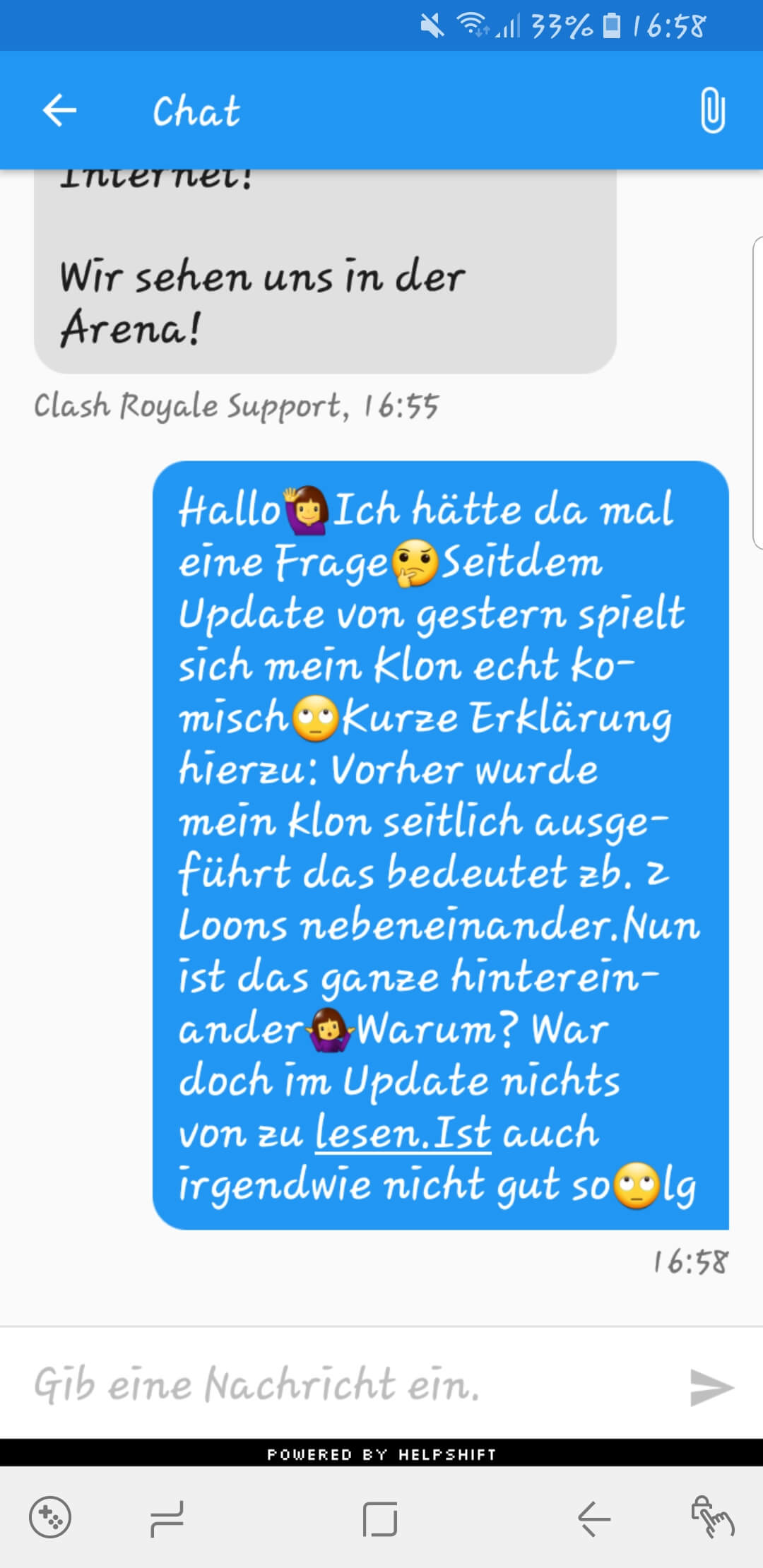 ja für mich ne waffee richtig🤗aber naja support sagte noch die wussten es selbst vorher nicht😅super👌naja bringt ja nix.aber mein blick als ich den klon nach dem update das erste mal spielte,war gold wert😅😅😅