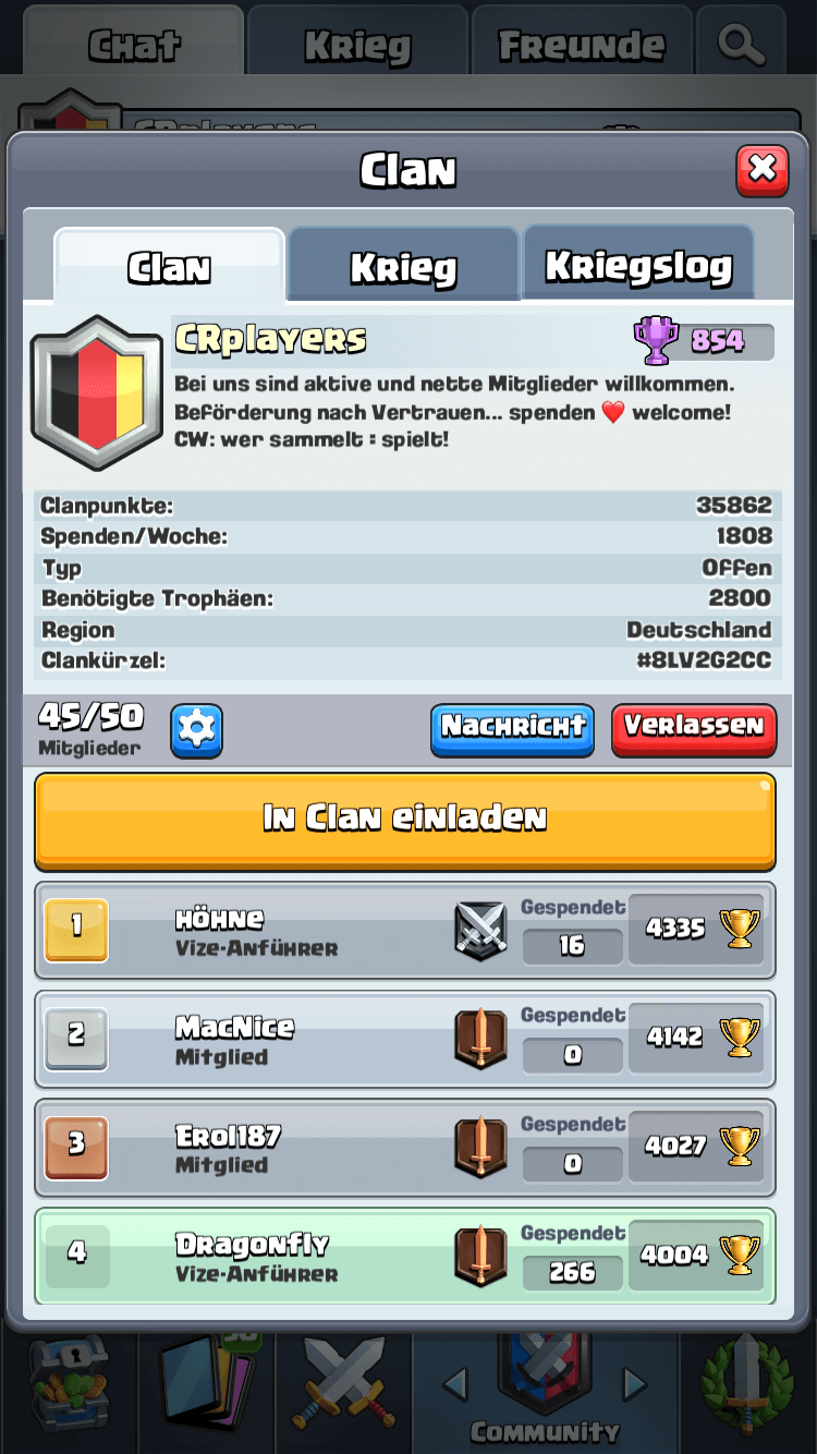Wir sind CRplayers und auf der Suche nach aktiven Mitgliedern. Spenden sind herzlich willkommen und es wird auch fleißig gespendet.