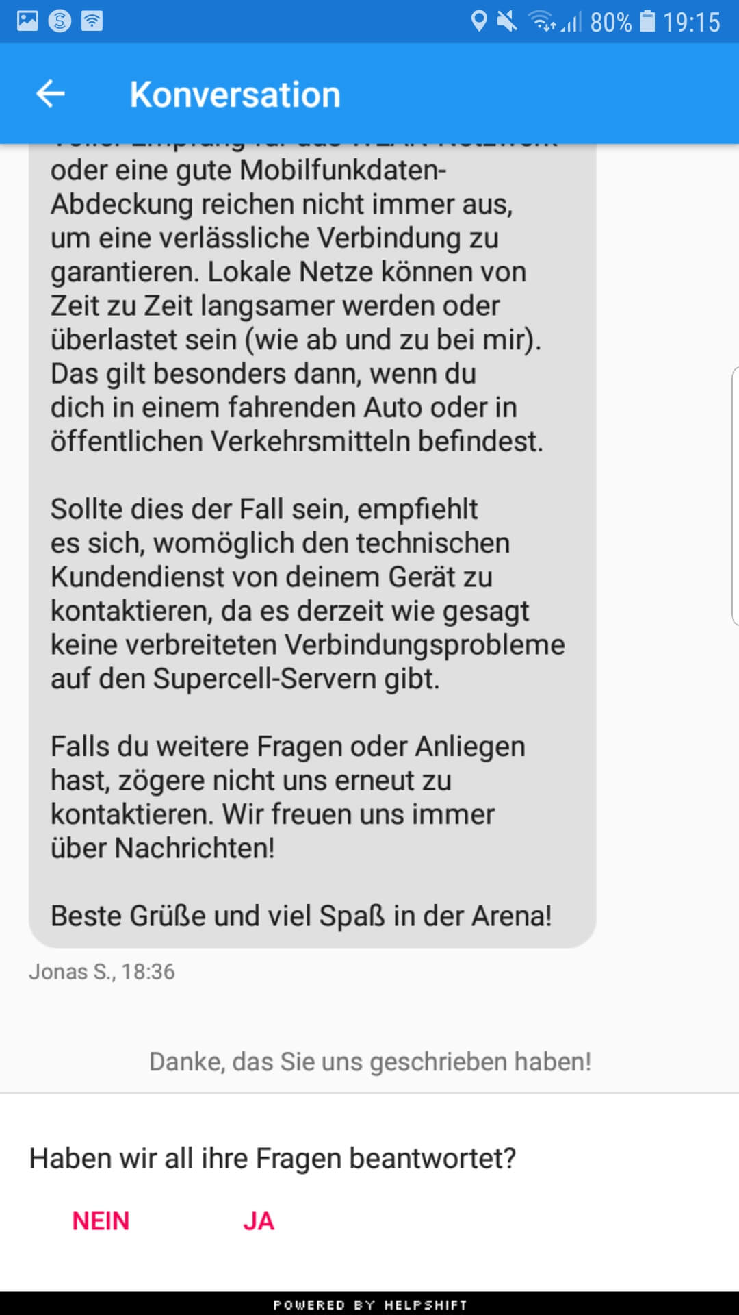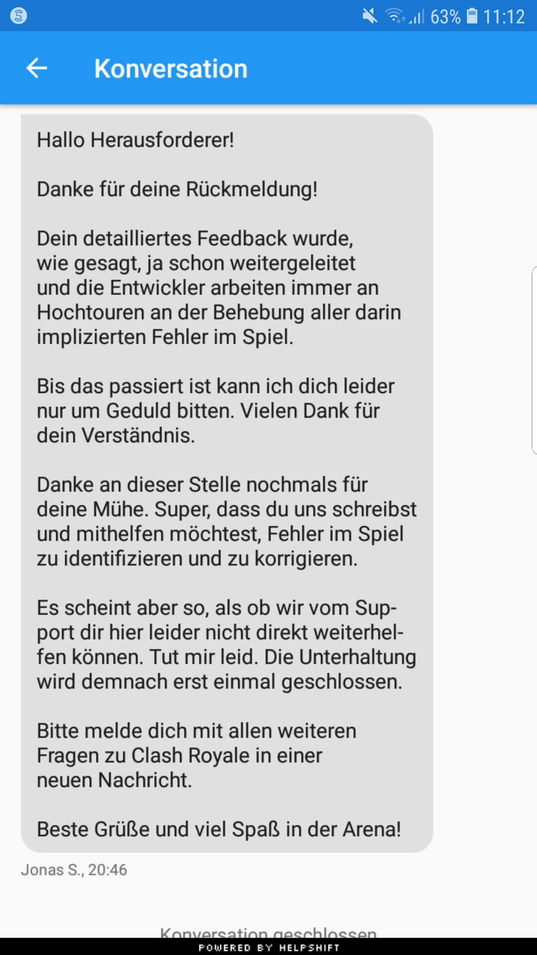 Ich zwinge Supercell spätestens über die Arbeit mit AWS dazu, das Problem zu beheben. Ich war lediglich so nett, Supercell, insbesondere Support und Community Manager mehrere Chancen zu geben, ihr Gesicht zu wahren und sich vernünftig zu verhalten. Aber wenn das hier so weiter geht, wird es eben mit eher negativeren Folgen für die Beteiligten von Supercell geklärt.