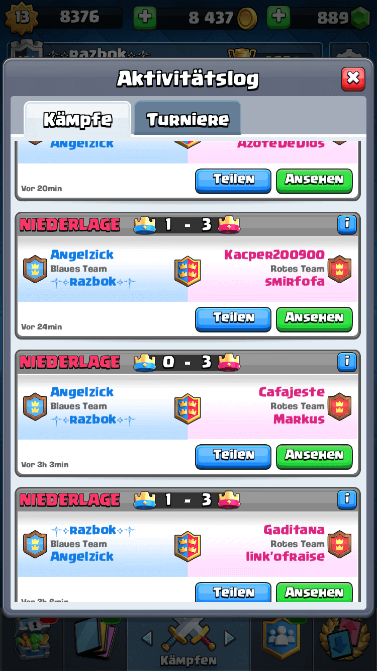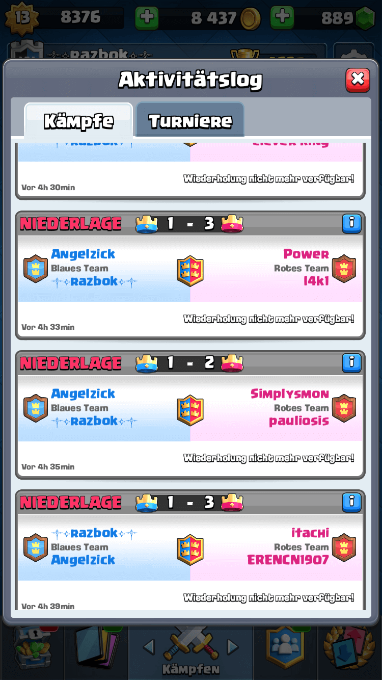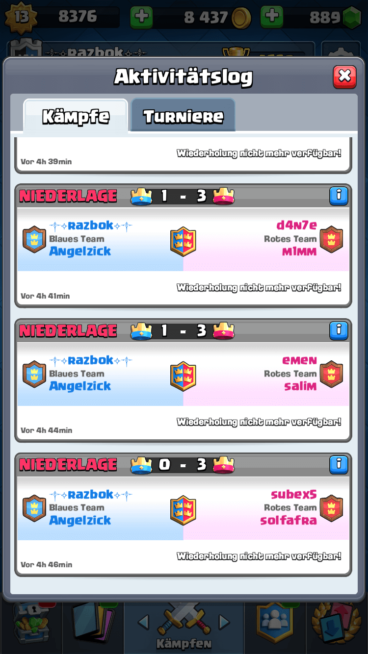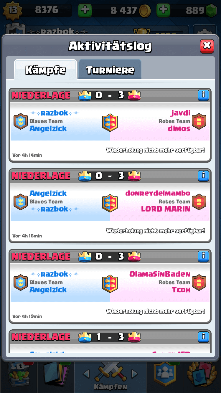 Alles anzeigenClash Royale ist leider gericked. Sobald ich mein Deck wechsel face ich nur noch Hardcounter. SC ist einfach eine Geldgeile Firma. ihr gehört geschlagen