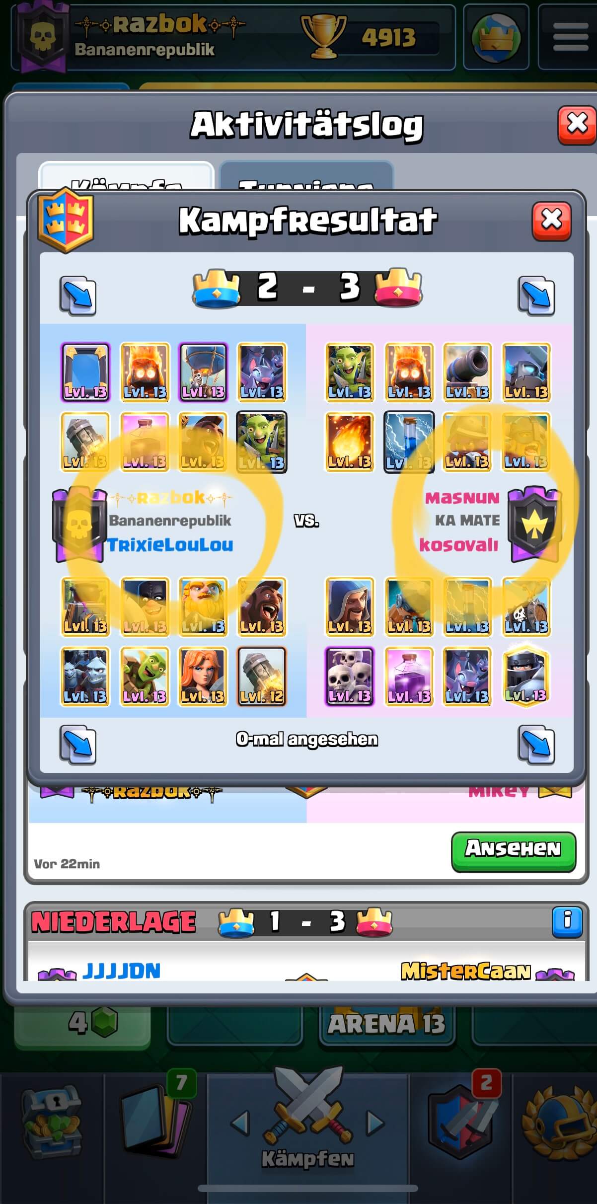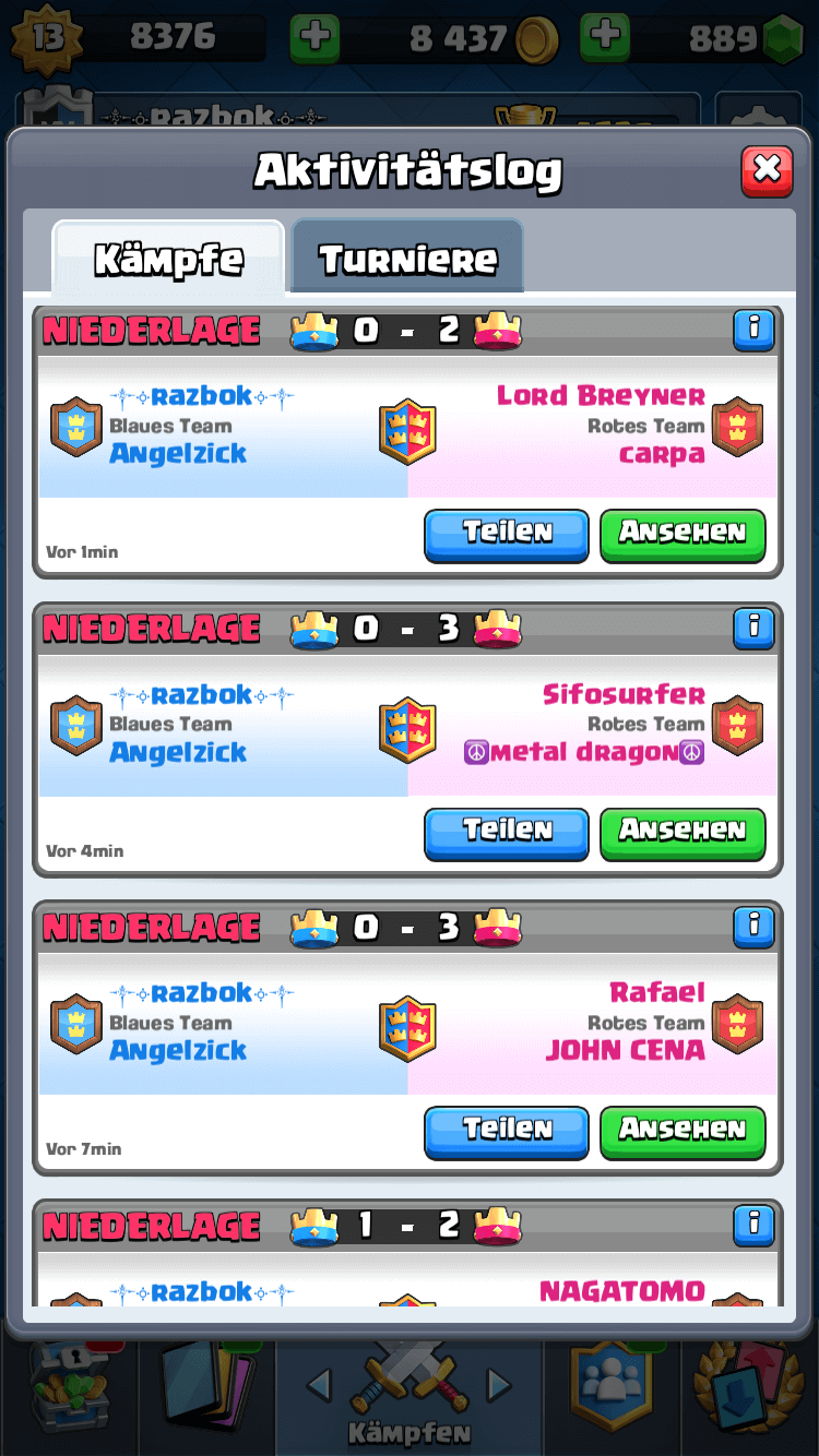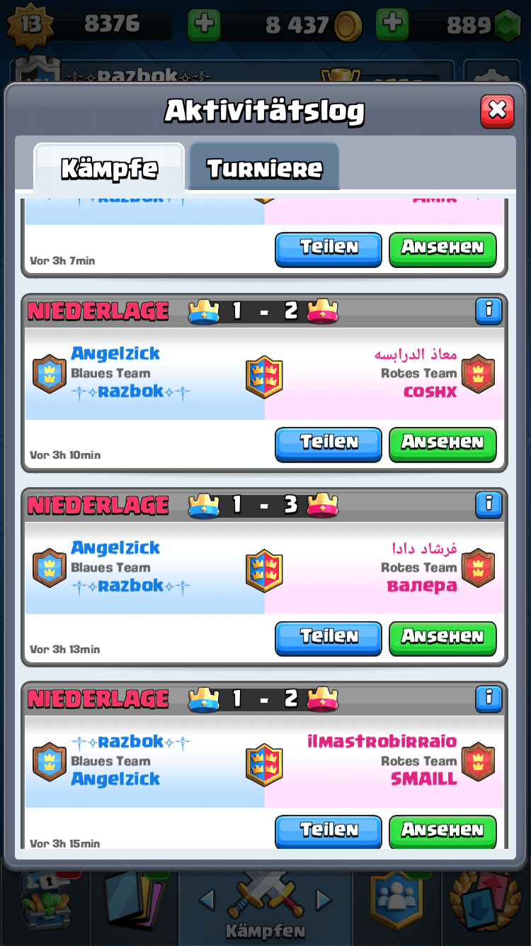 Alles anzeigenClash Royale ist leider gericked. Sobald ich mein Deck wechsel face ich nur noch Hardcounter. SC ist einfach eine Geldgeile Firma. ihr gehört geschlagen