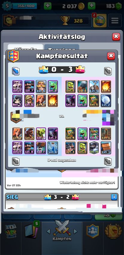 Also spielt Er, Mauerbrecher/Ritter/Knall/Skelettarmee/Infernoturm/Gift/Pfeile/ und ?Spiegel ?