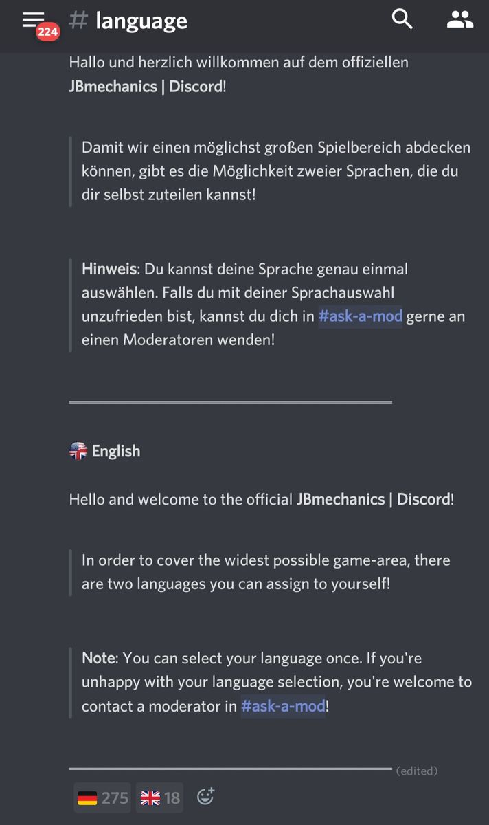 Falls ihr Hilfe auf dem Discord braucht einfach Bescheid geben. Kurzanleitung: im Channel #language auf die deutsche oder britische Flagge klicken (so wählt ihr die discord sprache aus). Danach werden auch alle Channel sichtbar und dann runter zu diesen Channeln. Hier findet ihr alle Infos.